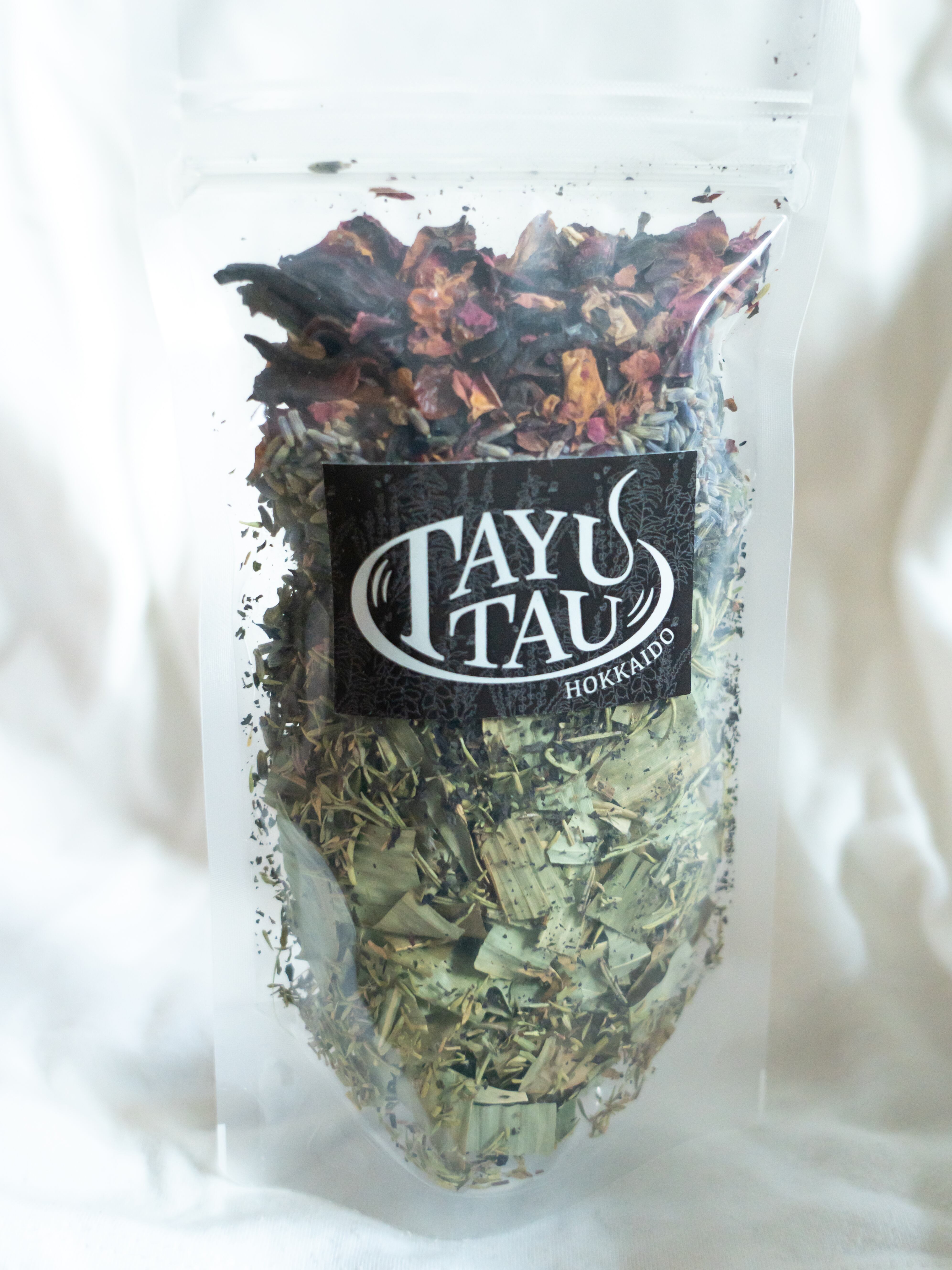 原材料:クマザサ、赤紫蘇、赤紫蘇の実、ハイビスカス、ローズ、ローズヒップ、ローズマリー、タイム、ラベンダー
